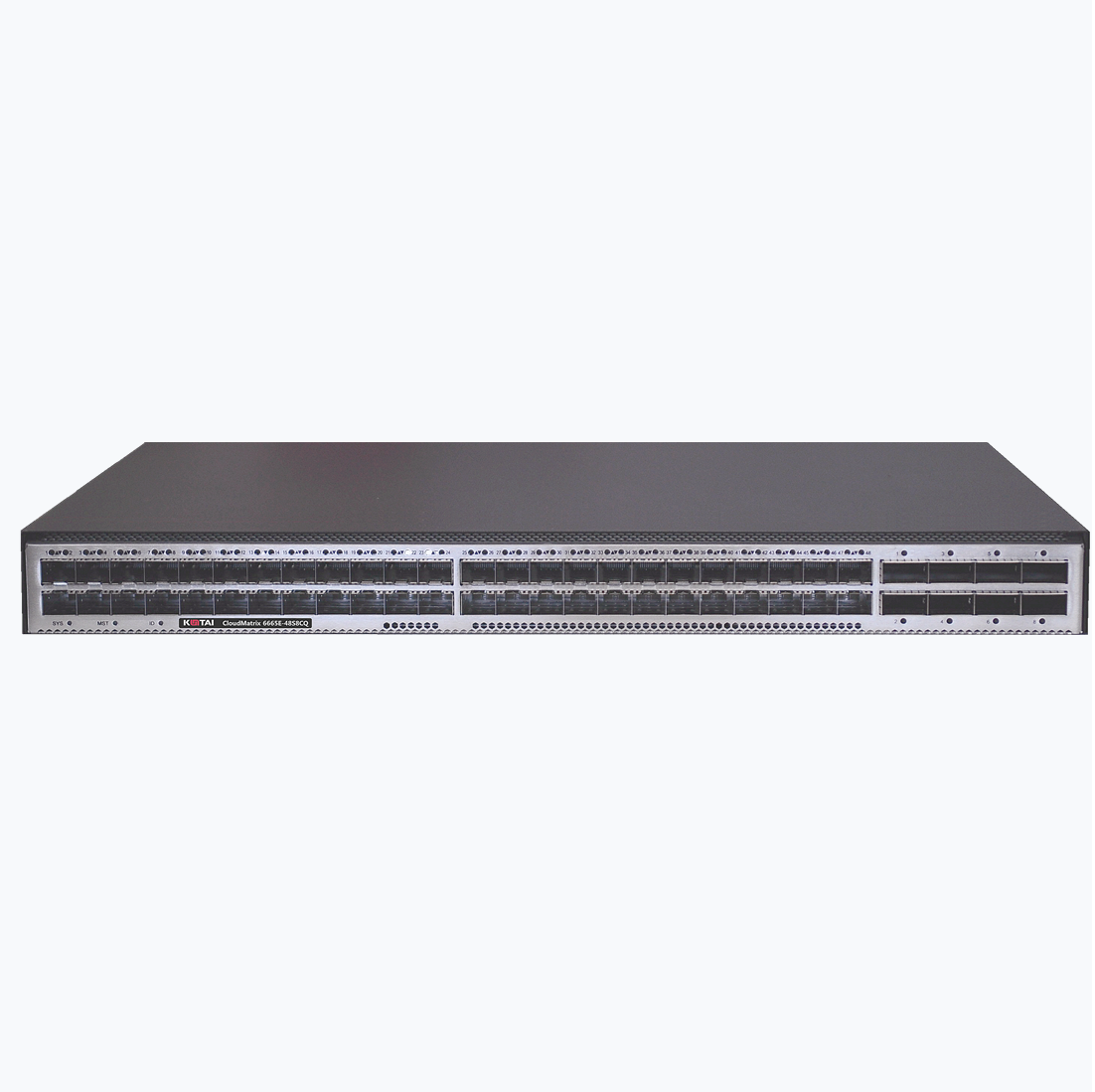 CloudMatrix 6665E-48S8CQ交换机提供 48 个 25GE SFP28 接口,8 个 100GE QSFP28 接口。